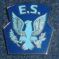 Eagle Squadron ES pin Very high quality copy of the unofficial squadron crests/badges often seen in wear on battledress and service dress pockets. 1.5 inches tall with 2 clutch-back fasteners. Dark blue backing with light blue eagle. Edging and outline of eagle in gold. In Stock |