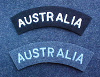 AUSTRALIA Titles Titles as worn by Australians serving as members of the RAF. Blue on black backing for Other Ranks and blue on blue-grey for officers. In Stock on dark backing Blue-grey backing temporarily unavailable