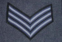RAAF NCO Stripes Late-war, direct embroidered Sergeant chevrons on RAAF midnight blue backing. In Stock |