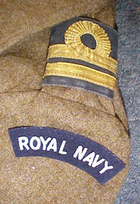 ROYAL NAVY Titles A very limited production run of curved style tabs as used by RN personnel serving in land-based assignments which required the wearing on khaki battledress uniforms. White text on a navy blue backing. Sold in pairs. In Stock |