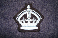 Crown Embroidered crown as worn above the Sgt chevrons by RCAF Flight Sergeants. Embroidered in shiny blue threads on dark backing. This pattern is unique to RCAF and much larger than the RAF version. Also worn on the lower cuff by RCAF WO2's. WO2s wore Other Ranks pattern uniforms with shoulder eagles. In Stock |